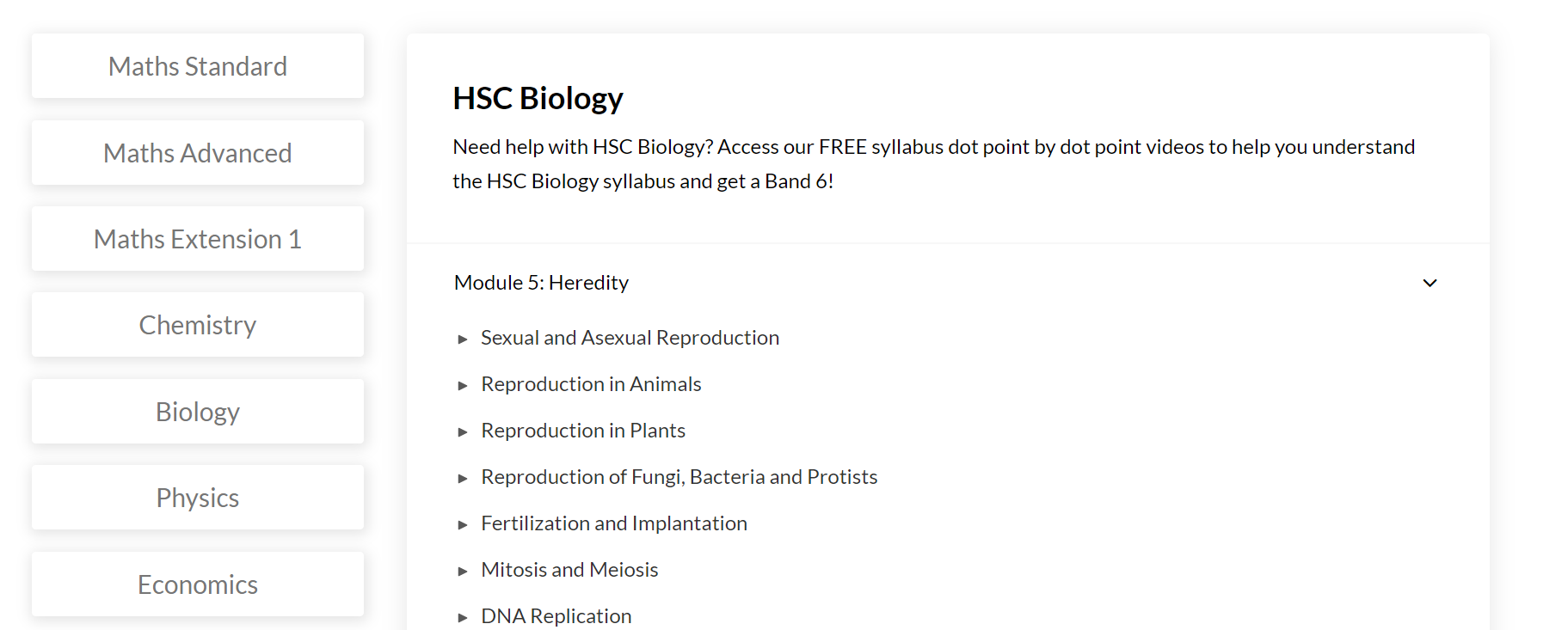 你所要做的就是选择你的HSC科目,模块,和你想学习的点,然后观看!