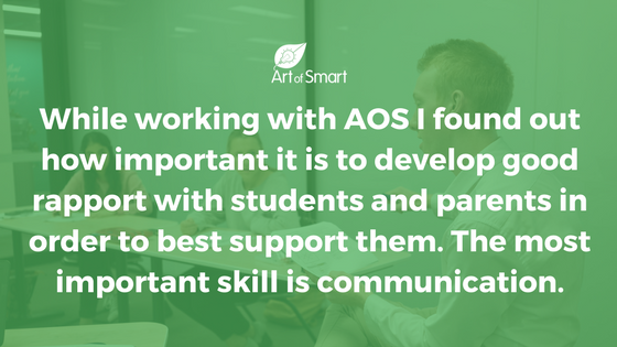 在Art of Smart工作期间,我学beplay体育官方到了很多关于如何区分不同学生的教学这对未来的老师来说是非常有用的技能。我还培养了在资源设计、目标设定、时间管理和组织方面的技能。然而,作为一名教练,我培养的最重要的技能绝对是那些与工作有关的技能沟通.