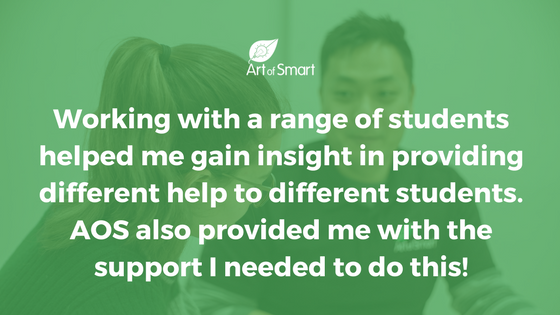 作为教练学生的一部分,我也与他们做了很多目标设置,帮助他们解决他们想要实现的东西以及如何到达那里。与一系列学生一起工作,让我更好地了解有利于具有不同能力和兴趣的学生的最佳效力,并给了我一个在课程中设计一些资源的机会。除了为我自己的学生设计的资源,我也有机会为Art of Smart设计资源。beplay体育官方我培养了更好的时间管理和组织能力,因为我必须在准备资源和指导课程与大学学习之间取得平衡——尤其是在考试期间!