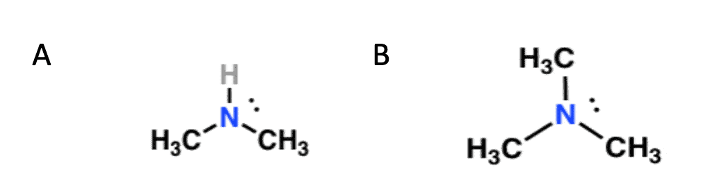 如下所示是两种胺。确定哪种结构含有二级碳,并且该结构含有三碳。证明你的答案。