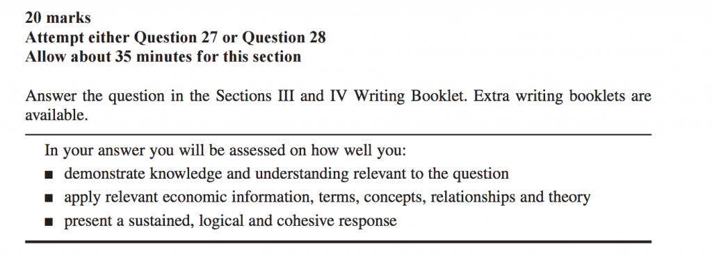 You’ll note that it specifically states: “apply relevant economic information, terms, concepts, relationships and theory” = USE LOTS OF ECONOMIC DATA…