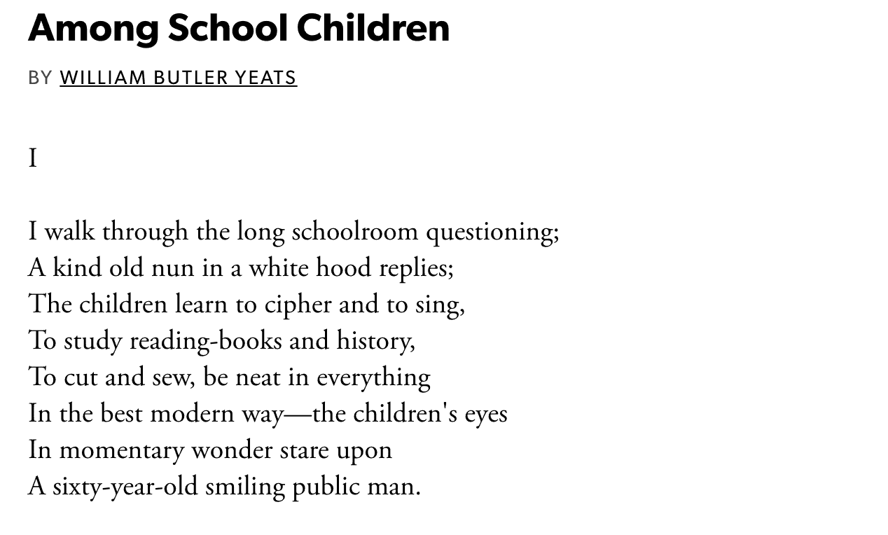 For example, if you are studying‘Among School Children’ by William Butler Yeatsas your HSC English poem, the following context would be relevant.