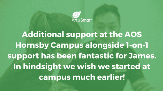 As a result, Fiona from Art of Smart got in touch with us and suggested especially given that James was in Year 12 that we consider thesupport at the Art of Smart Hornsby campus and we never looked back!