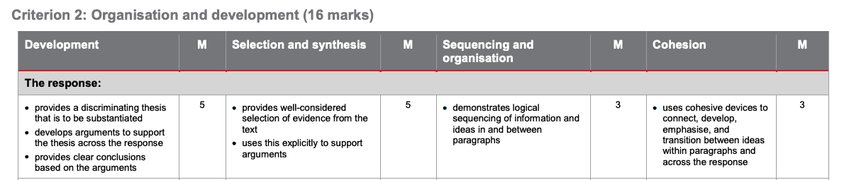 Overall, your essay for QCE English should be addressing all of the criteria listed below. Be sure to read over your work once you’ve finished writing your essay toensure that your grammar is correct, you’ve used proper punctuation throughout and there aren’t any spelling errors.