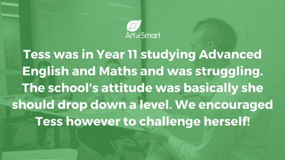 As Tess was in Year 11, she was struggling with Maths and English, and the school’s attitude was that if you struggle with something you should just drop a level! I was called me into a meeting at end of Year 11 and discover it’s a meeting with the Deputy Headmaster, 5 teachers, and Tess. Basically a lot of pressure was placed on Tess to drop a level and it was at this point we looked to get additional help!