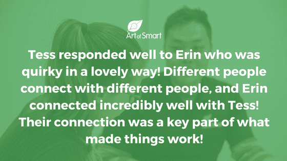 I was looking for someone who was removed from the family and Art of Smart were very professional. While Tess’s sister is absolutely brilliant at English, Tess wouldn’t do the work required and listen and learn because it was her sister!
