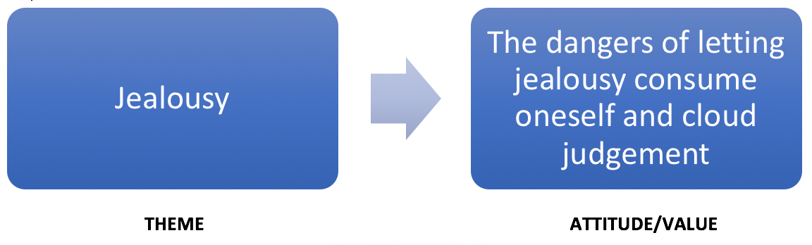 例如在剧中奥赛罗那“嫉妒”不是关键的态度或价值。