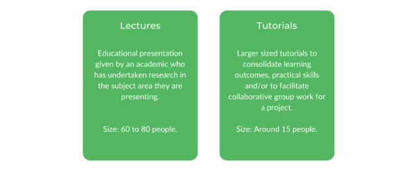 在您的讲座中,您通常会被包围60 to 80 other students和you’ll learn a lot of theoretical concepts but you won’t really get to put them into practice. Don’t get too complacent though – you’ll need to remember the content from lectures to make the most out of your workshops.