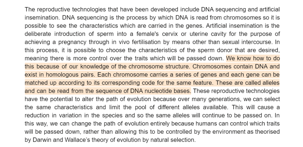 Particularly since it is impossible to explain the reproductive technologies without our understanding of the chromosome structure, and it would be even more confusing if I tried to explain the impact on evolution without explaining the reproductive technologies themselves!