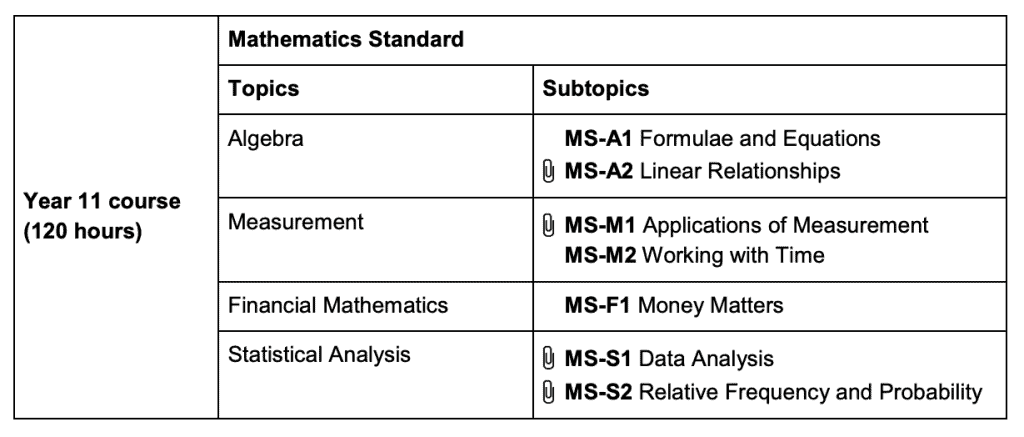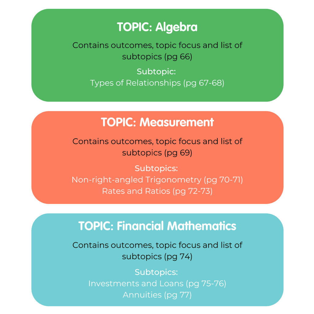 还有一点。标准数学教学大纲如下(为了简短起见,我只使用了3个主题)。