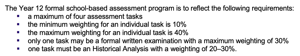这适用于整个12年HSC现代史课程,核心研究的评估将符合上述要求。然而,你的学校如何在这些指导方针下评估你取决于他们。
