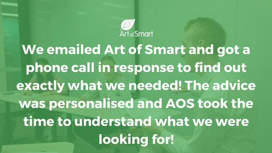我做了谷歌搜索,找到了聪明的艺术。beplay体育官方我们通过电子邮件与Art of Smart取得了联系,Artbeplay体育官方 of Smart对此做出了非常积极的回应。我们收到了一封回复邮件的电话,询问我们在寻找什么以及需要什么。