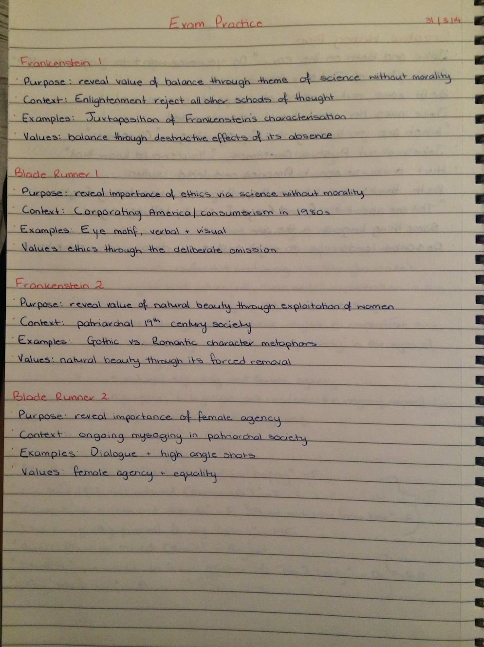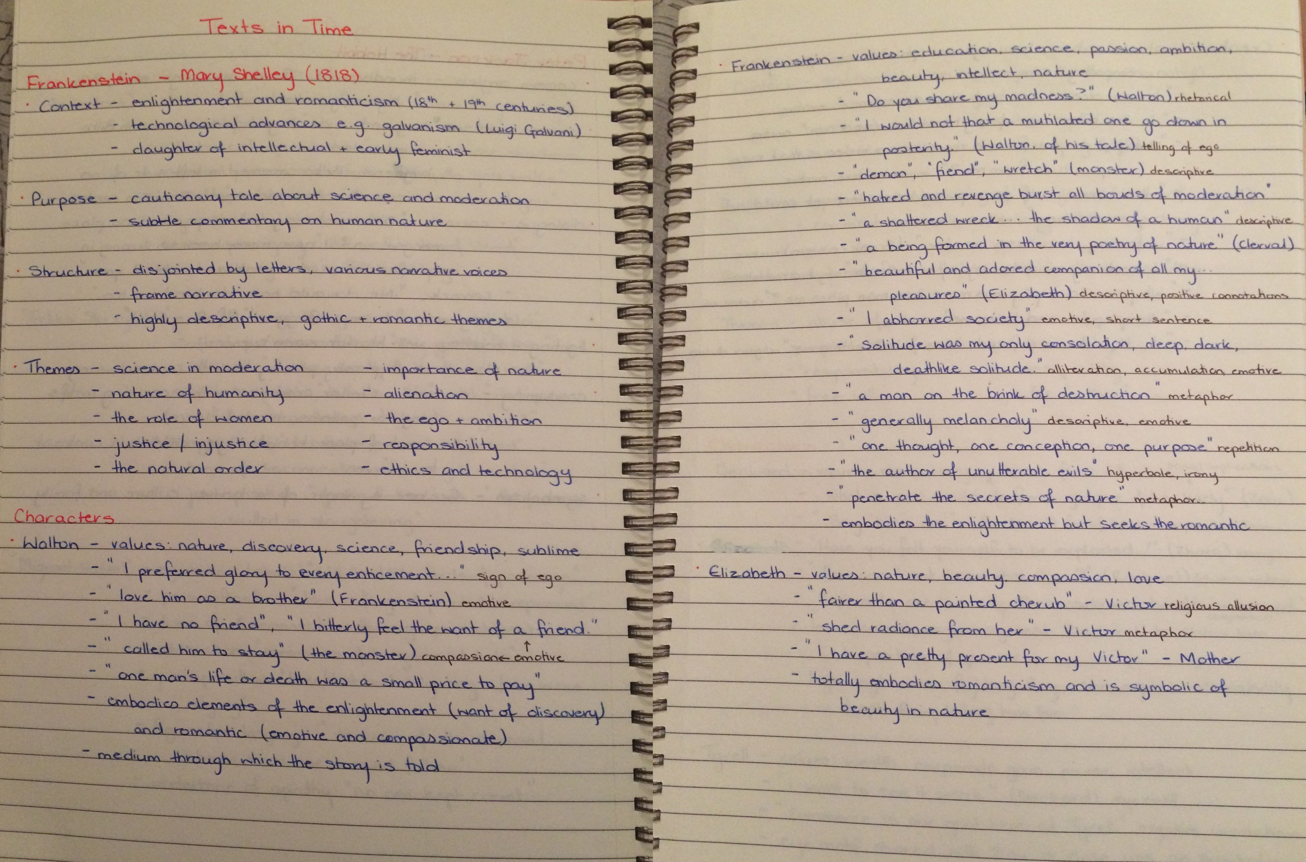 这是学习笔记的典型传播可能是多么的。请注意,在思想/主题中,存在大量的信息同样传播 - 这些信息只有两页整个笔记。