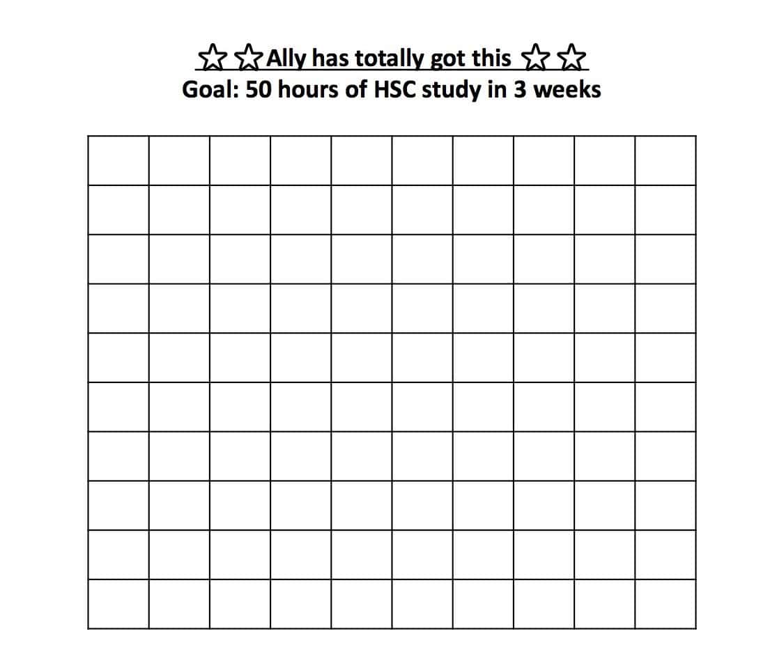 例如,本文档的目标是在3周内分为30分钟的块50小时。每次她都会完成一个街区,她会把明星放在正方形。