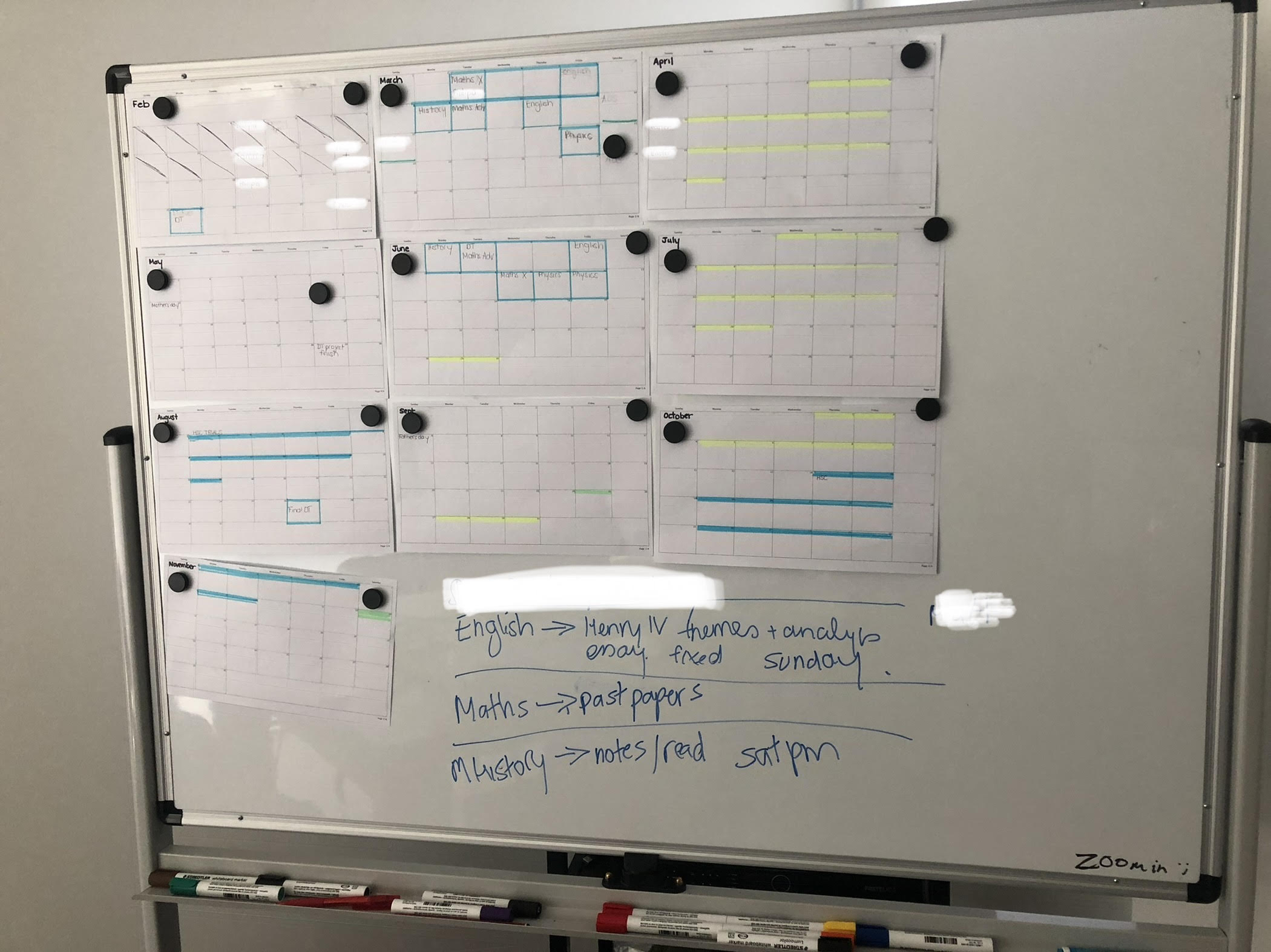“我有一个大白板,我会把它用作日历。我会标出专业评估、练习试卷或其他我需要完成的事情。”