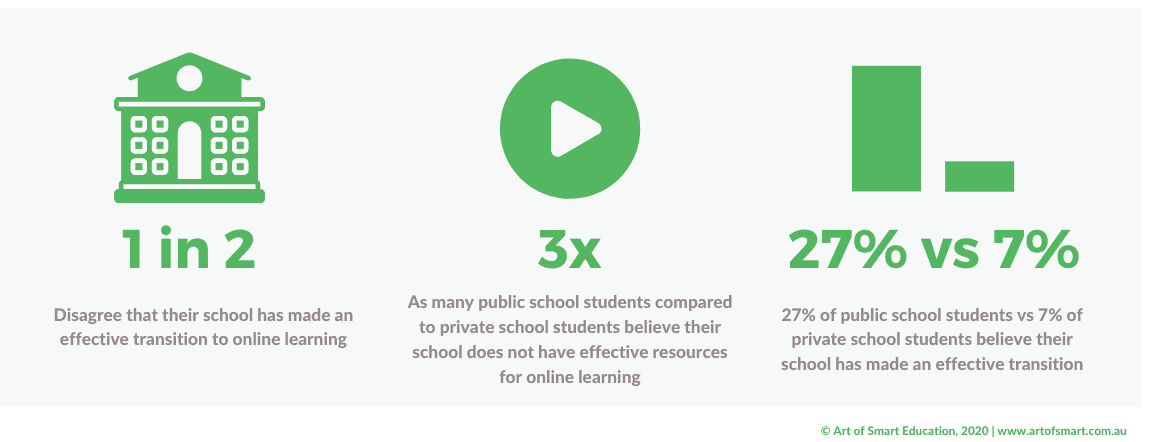 公立学校的学生是私立学校学生的三倍,他们认为自己的学校没有有效的在线学习资源!