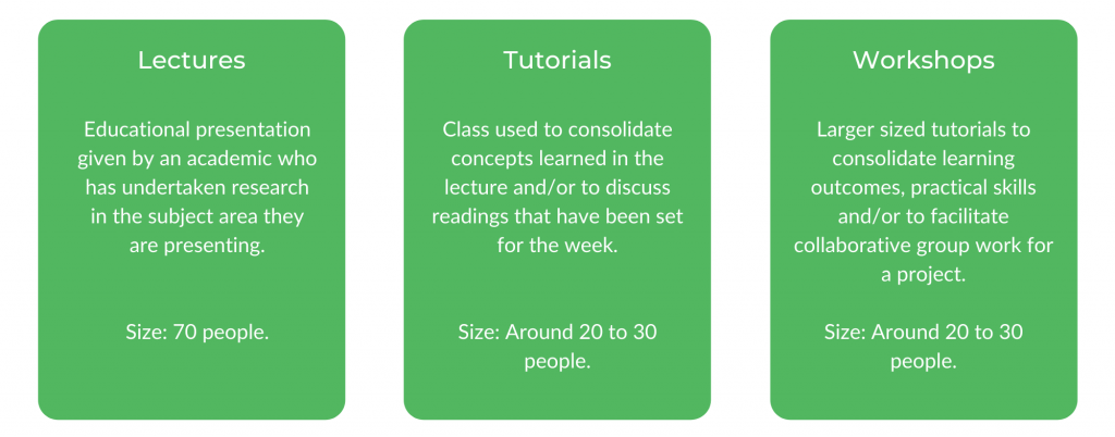 在这一学位中,有一种非常广泛的方式,其中学习内容被传达给学生 - 这可能包括讲座,教程和研讨会。