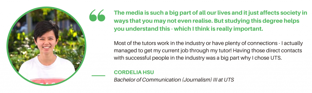 科技大学的传播学学士是通过讲座和教程-你很幸运,因为UTS通讯公司有学期.