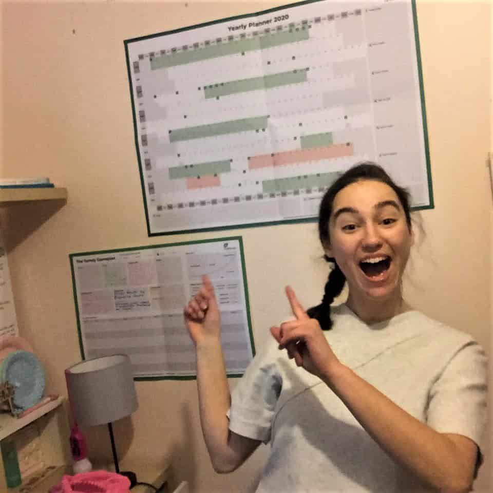 她还在墙上贴了两张A4纸,上面写着上学的日子,她可以看到自己的时间表,计划下午放学后那些很容易被拖延的时间。