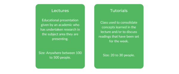 一般来说,麦考瑞大学的教育课程包括讲座(2小时)搭配了一个教程(1小时)巩固那周的课程内容。