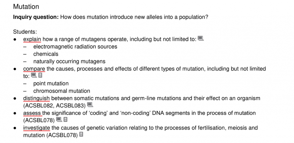 例如,让我们看看下面关于“突变”的教学大纲部分。