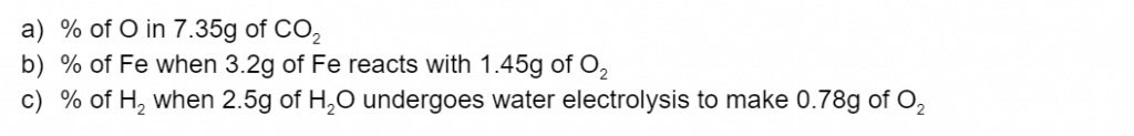 计算下列元素/化合物的重量百分比(3分)