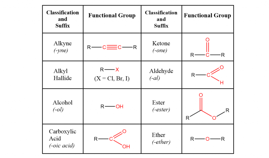 第二步是回顾有机基质类型(如烷烃,烯烃,炔,醇等)之间的结构差。将其应用于您的命名方案。