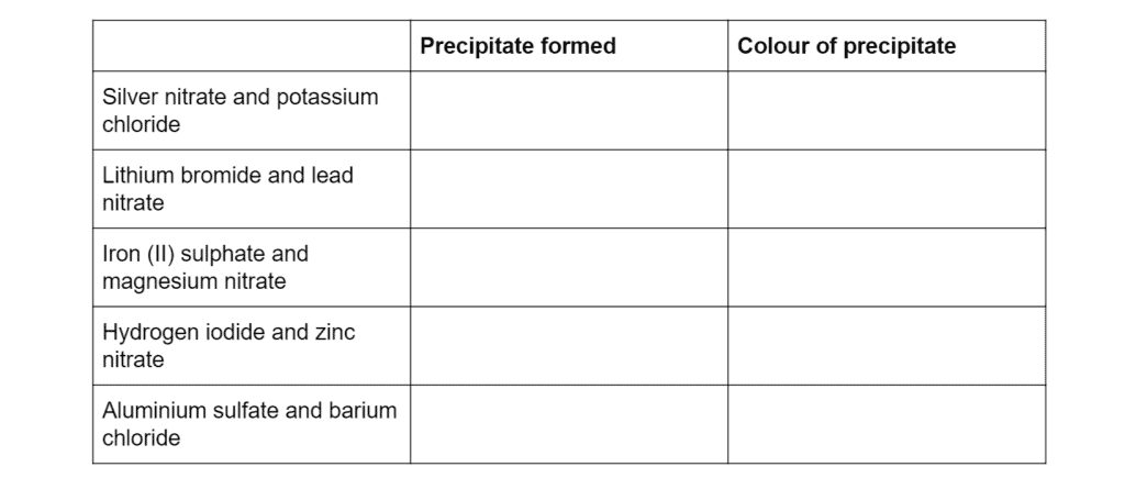 (L1.2:使用火焰测试、沉淀和压缩进行定性调查测试水溶液在下列离子和阴离子中的存在的适当的Exation反应)