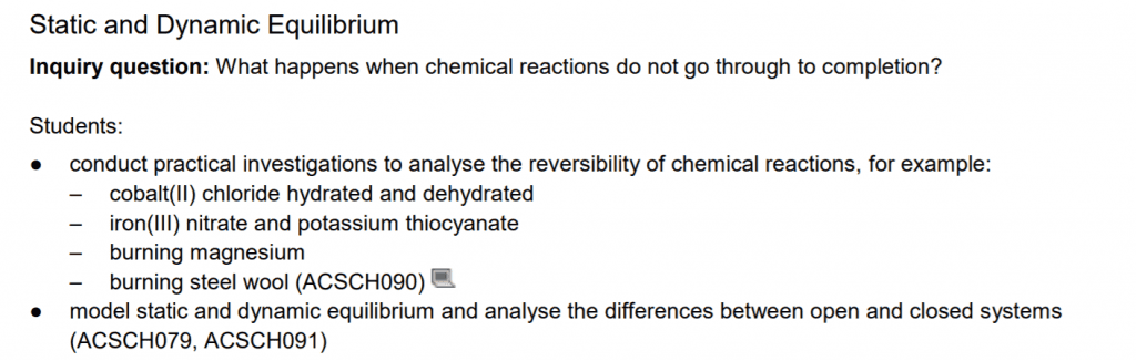 - Examples of static equilibrium can include burning magnesium and steel wool(5.1.1,5.1.2,5.1.3)