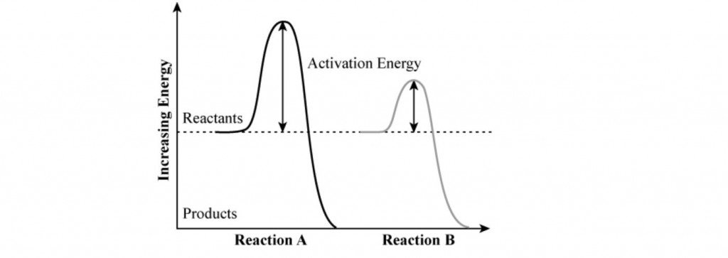考虑下图中的反应A和反应B,解释其活化能对其反应活性的影响。(3标志)
