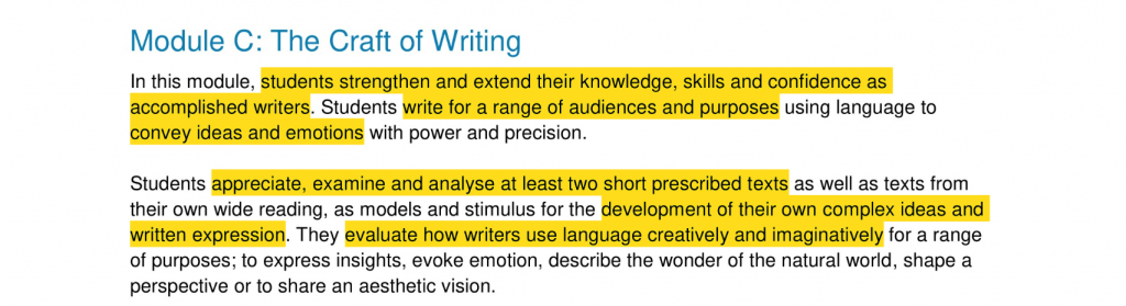 模块C:写作的工艺是一个完全新的模块,具有新的课程提纲更改。