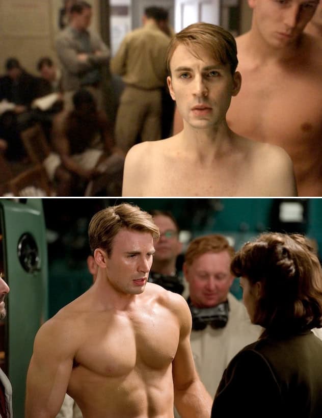 Because of this, Dr Erskine puts him forward for a new experiment to turn him into a super soldier. After Steve accepts this, Steve is injected with the Super Soldier Serum which makes him a foot taller and completely built with muscle.