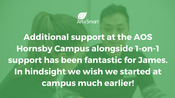 这使詹姆斯能够看到他不是一个人,并且能够获得其他学生所在的地方以及他们如何面临类似挑战,这也意味着他是暴露于其他学生提出的更广泛的问题。AOS Hornsby校园的英语是一个很好的平衡,在1对1辅导和一个小组环境之间。