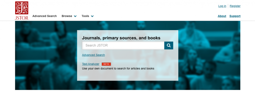 JSTOR是找到关键报价的最好的地方之一。JSTOR是一个数据库,您可以在其中搜索同行评审的期刊和书籍。您将需要库访问使用JSTOR。与您的学校图书馆员联系以查看您的学校是否可以访问,如果无法访问,您可以申请州图书馆卡这里,这将使您访问。