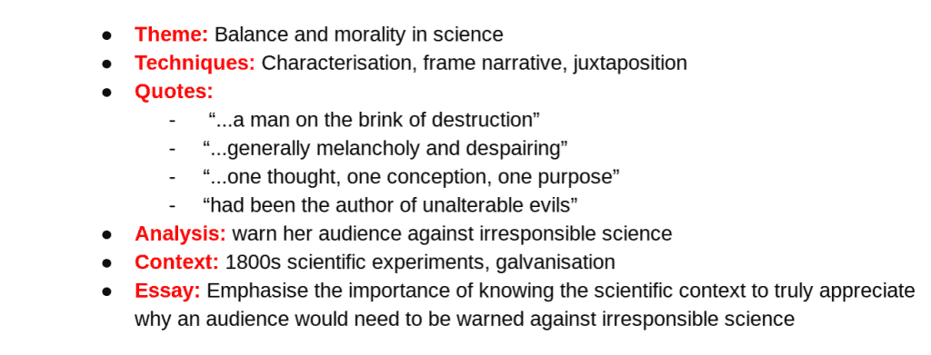 It’s really just a case of figuring out what the most important elements of your essay, essay plan or analysis are and then studying them.
