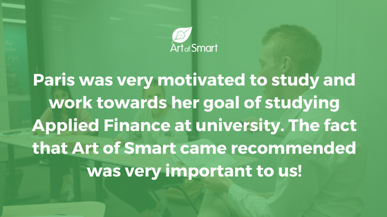 When we started working with Art of Smart, Paris was scoring 50% in English and in her HSC Trials she scored 86% in Advanced English! So she improved by 45%+!Paris is so ready for tertiary study now!