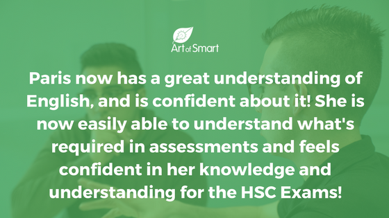 Paris is nowconfident in understanding what’s required and in meeting the assessment criteria for English!She feelsconfident in her knowledge and understandingto the HSC exams.