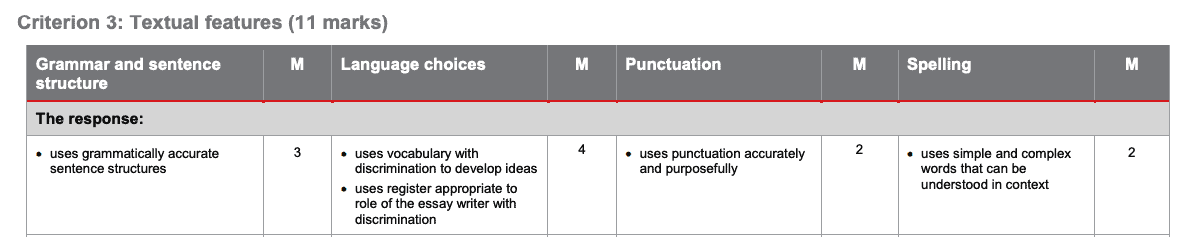总的来说,你的QCE英语作文应该满足以下列出的所有标准。一旦你写完文章,一定要把你的作业再看一遍确保你的语法是正确的,你使用了正确的标点符号,没有任何拼写错误。