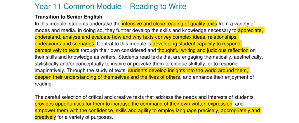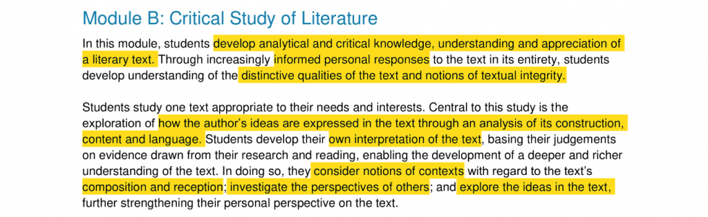 在11年级的高级英语课程中,你将学习文学文本的批判性学习,在12年级的模块B中你也会这样做!