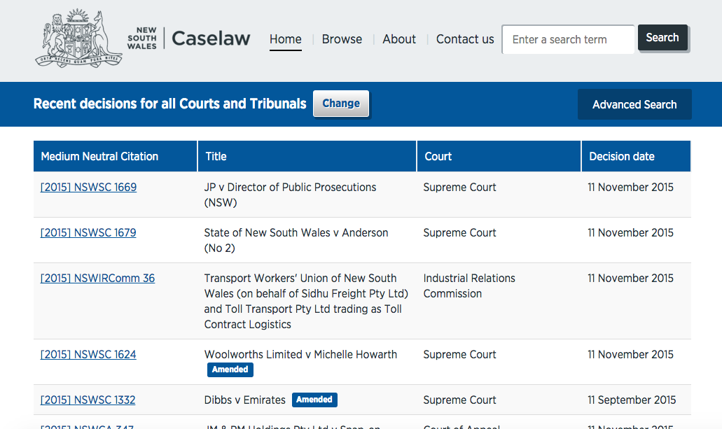 新南威尔士州CaseLaw也有法院判决结果的出版物。