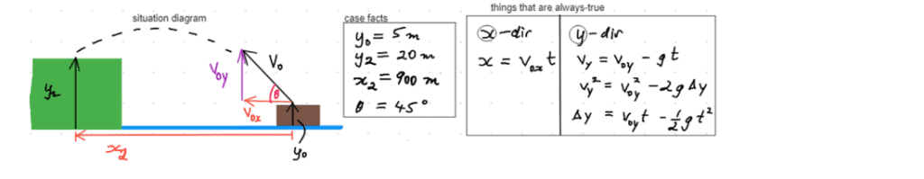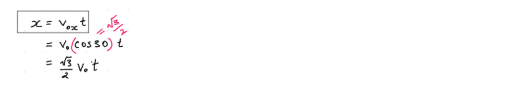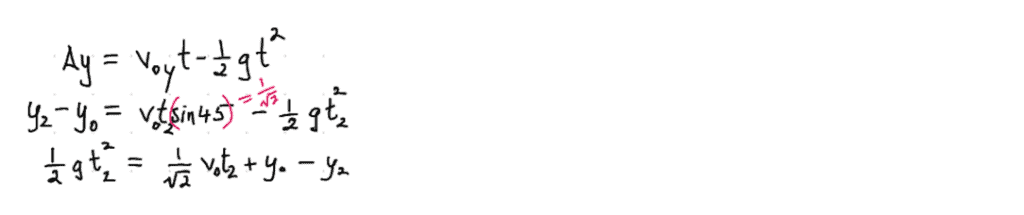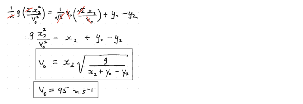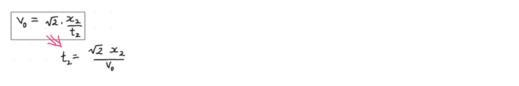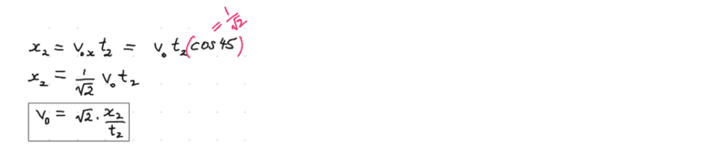 From our work in thexdirection, we can re-expresst2(the only thing we don’t know in the above equation) in terms of things that we either already know (x2), or want to find-out as the end-goal (v0):