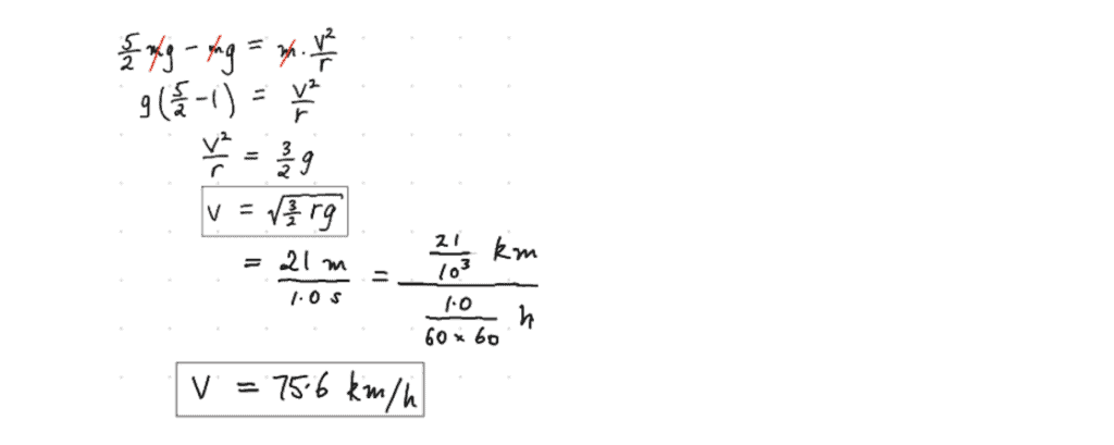 Answer: Hence a speed limit of 60 km.h-1is needed, since 80 km.h-1would require a normal force corresponding to more than 2.5 g’s.