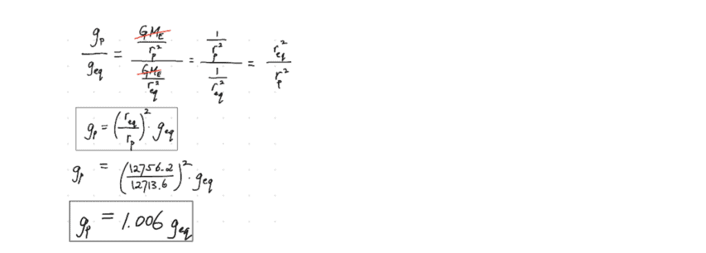 The question wants a direct comparison: In physics, that meansnumbers. Let’s find the field-strength ratio between the g-fields.
