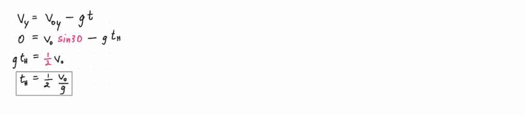 Projectiles arriving at the top of their flight must stop going upwards before turning around to fall. At the very moment of being atH(let’s call that momenttH),vy= 0.