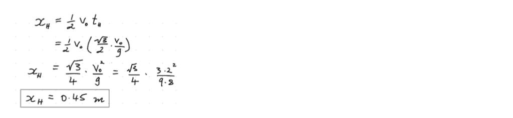 Answer: The rock will have travelled 0.45 m horizontally by the time it’s at the top of its flight.