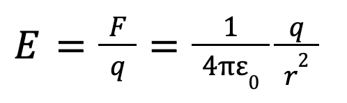 But why do particles experience this force? We know thatfor massive objects they experience gravitational forces due to a gravitational field that acts across a distance.From this we can speculate that something known as an electric field exists for charged particles which allows for this force to be exerted across a distance. This field can be calculated as follows: