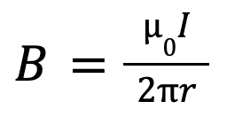 其中B是磁场,我是流过电线的电流,R是电线的半径和米0is the magnetic constant given by the formula sheet. The direction of this magnetic field is given by the right hand rule which can be seen below.