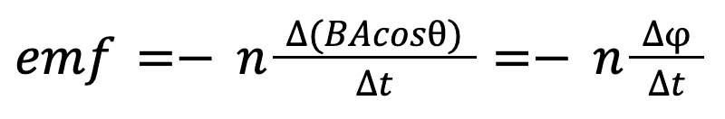 Where n is the number of turns, phi is the magnetic flux and delta (Δ) t is the amount of time passed in seconds.