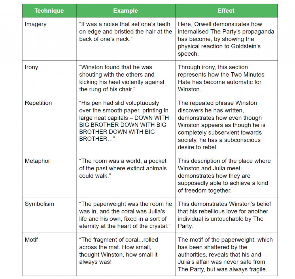 在这种情况下,让我们看看乔治·奥威尔的1984作为一个例子。我们知道,我们希望引用一些强大的语言特性,这也可以与冲突的观点联系起来。