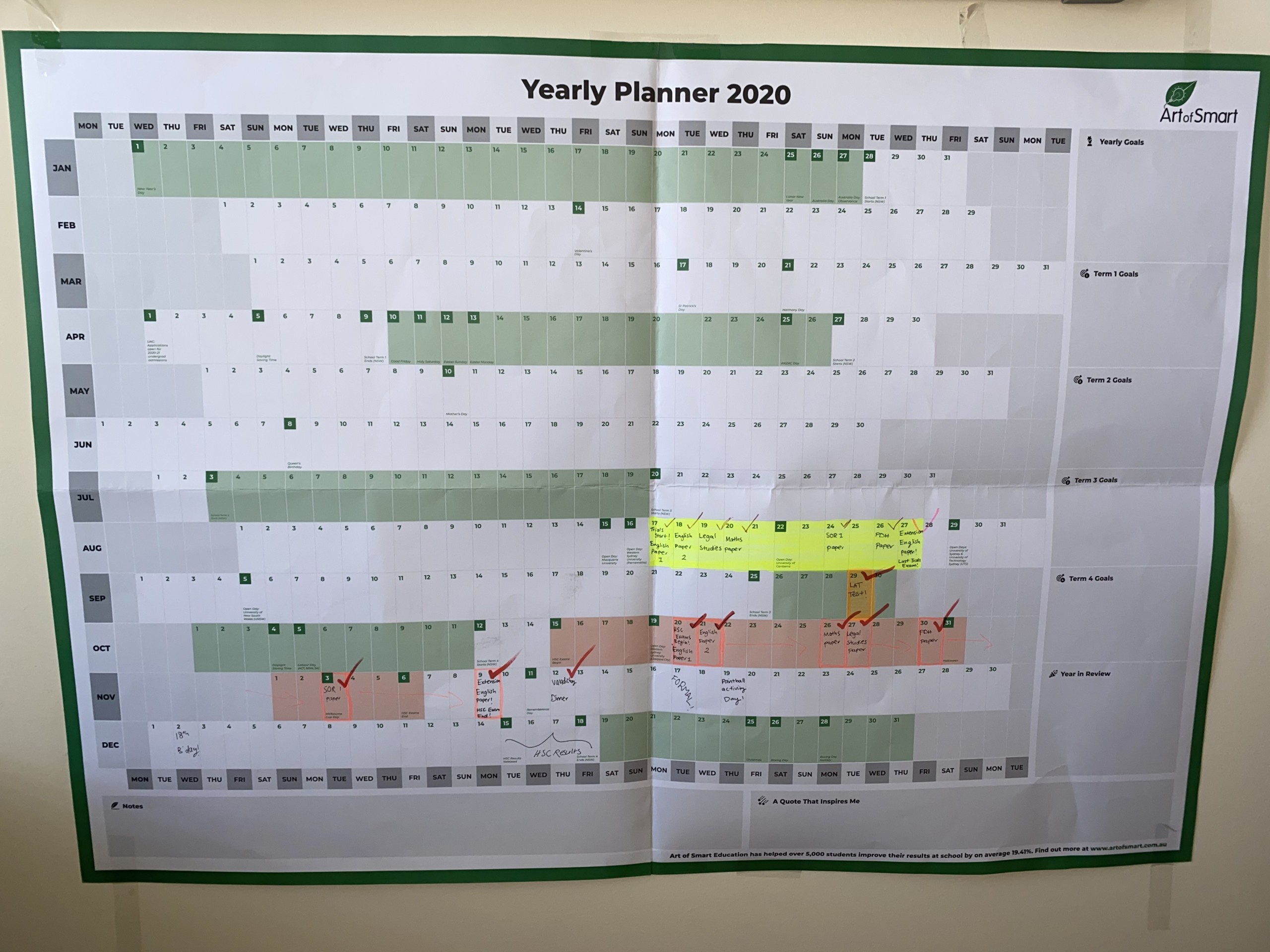 在这个年度计划中,每周计划对于那些在考试前感到压力很大的人来说也是必须的。